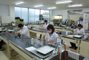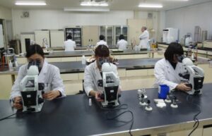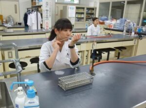 平板培地へ白金耳で菌を塗ります。基本操作をしっかりと行って下さいね。