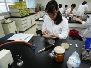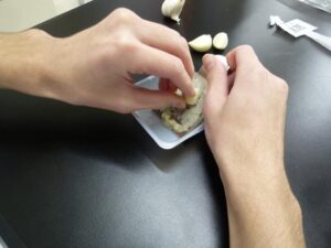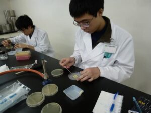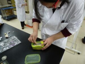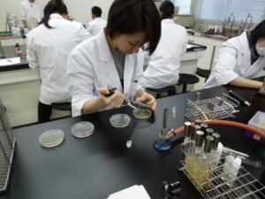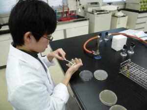 香辛料の準備が出来ましたら、平板培地へ菌を塗り広げます。