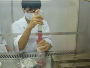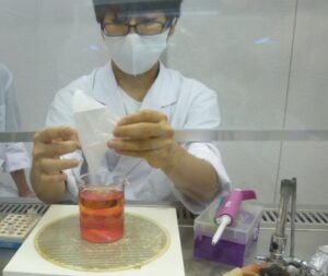 ろ過滅菌して試薬瓶に入れたら出来上がりです。