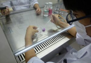 あらかじめ新しい培地を入れたフラスコへ細胞浮遊液を加え、全量を5mLにして培養を続けます。