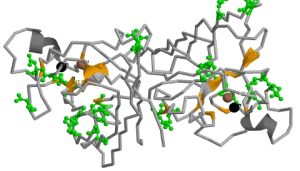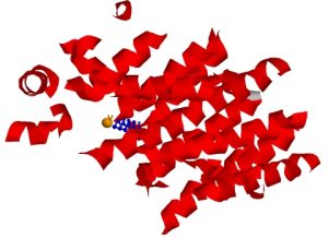αヘリックスや含まれる金属元素などリボン状だったり、球状に表示をしました。