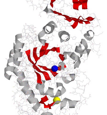αヘリックスや含まれる金属元素などリボン状だったり、球状に表示をしました。