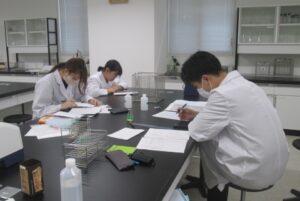あれれ、少し分光光度計の使用方法を忘れている学生がいるような・・・。