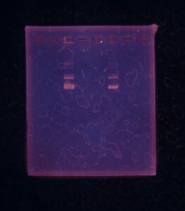 最後にプラスミドをアガロースゲル電気泳動にかけてプラスミドの有無を確認します。