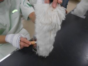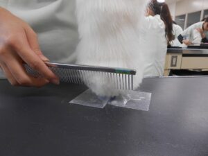 すべての毛玉を梳かし終わったら、次にコームを使い、毛を逆立てます。