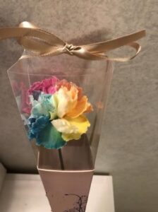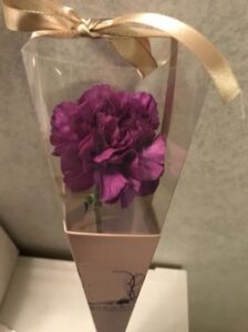 実物を直接見るのは私ははじめてでしたが、「ムーンダスト」というバイオの技術で品種改良されて生まれた青いカーネーションです。