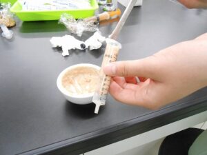 この隙間にシリンジの先端を入れ、ご飯を流し入れます。