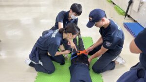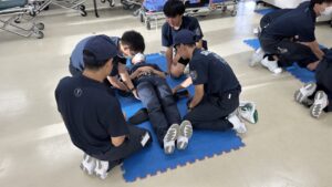 1年生はまだ救急活動要領は学んでいませんが、秋にはJPTECに基づく外傷現場活動要領が始まります。