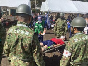 負傷者役として、各病院のDMAT隊、在日米軍、自衛隊、