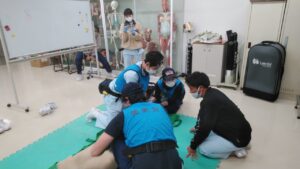 一生懸命に練習したBLSも他人に指導できるまでに成長しました。
