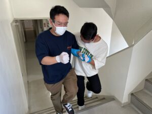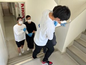 階段の上り下りなど、小さな段差にも気を配りながら学校内を歩きます。