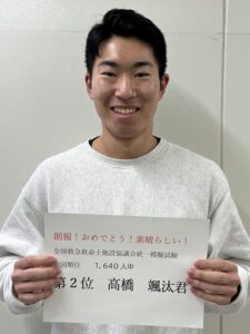 全国統一模試で全国2番を取ることができてすごく嬉しいです。