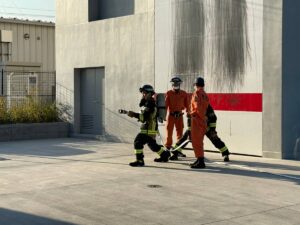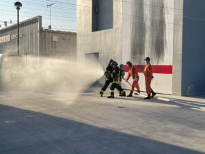 続いて、防火着を着装して放水訓練を実施させていただきました。