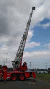 その後は消火器の使用方法の体験やはしご車の搭乗体験をさせていただきました。