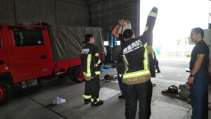 防火衣を着装して、いよいよ訓練棟に臨みます!!