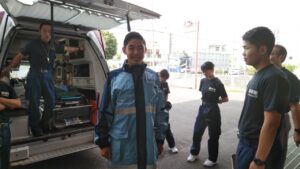 続いて、防火衣や感染防止衣も着装させていただきました。