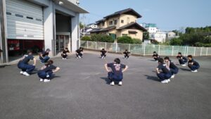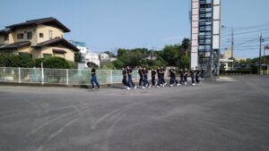 続いて、庁舎周りをランニングしながらウォーミングアップを行いました。