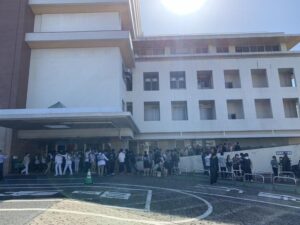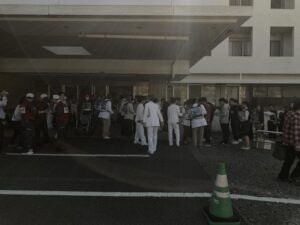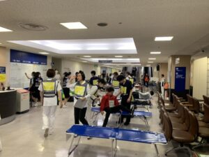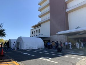 病院玄関でトリアージ(診療順序の選別)を実施したのち、各場所で診療が行われておりました。
