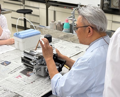 検査に適した標本を作製するためのポイントは多々あり、いつになく集中している様子でした。
