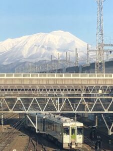 銀河鉄道で有名な盛岡駅から眺められる岩手山は真っ白に冬化粧です。