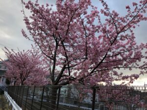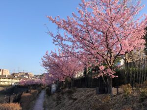 帰ってくれば散歩コースの近所の公園の河津桜が満開でした。