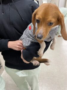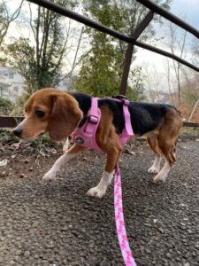 こんにちは 先月、学校犬に加わってくれたビーグルの「さくら」も徐々に馴染んできました。   最初は警戒して食べようとしなかったごはんも、今では他の学校犬と同じタイミングで、 同じスピードで食べてくれるようになりました。 初めて経験することがたくさんなので、少しずつ少しずつですね。   最近の初めては「お洋服を着たこと」 似合っているかどうかは触れずにお願いします。 女の子らしいお洋服を学生に着せてもらいました。   そして「お散歩!」 アスファルトや落ち葉、土の感覚はさくらにとっては初めてのことなので、 やはり怖くて動けない状態になりました。 これからお散歩というものが楽しいもの!と感じてくれるようになってくれると嬉しいです。 以上 さくらの近況でした。   ↓↓クリックお願いします