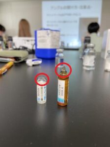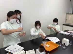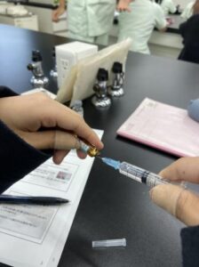 初めてアンプルを折る作業に緊張して指先がプルプルしている学生もいて、見ているこちらも緊張してしまいました。