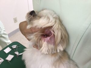 しっかりと保定を学んだあとは、耳の掃除を行いました!