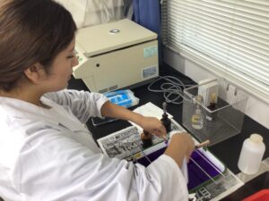 まずはスライドガラスを使用して染色用塗沫標本を作ります。