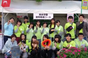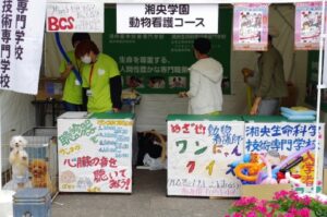 動物看護コースのブースでは、「聴診器でワンコの心臓の音を聴いてみよう!」「めざせ!動物看護師 ワンにゃんクイズ」「うちの子やせてる?太ってる?BCS(ボディコンディションスコア)の測定」を実施。