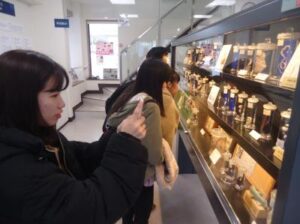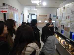 展示を見ながら、SH先生のご説明に熱心に耳を傾ける学生達・・・